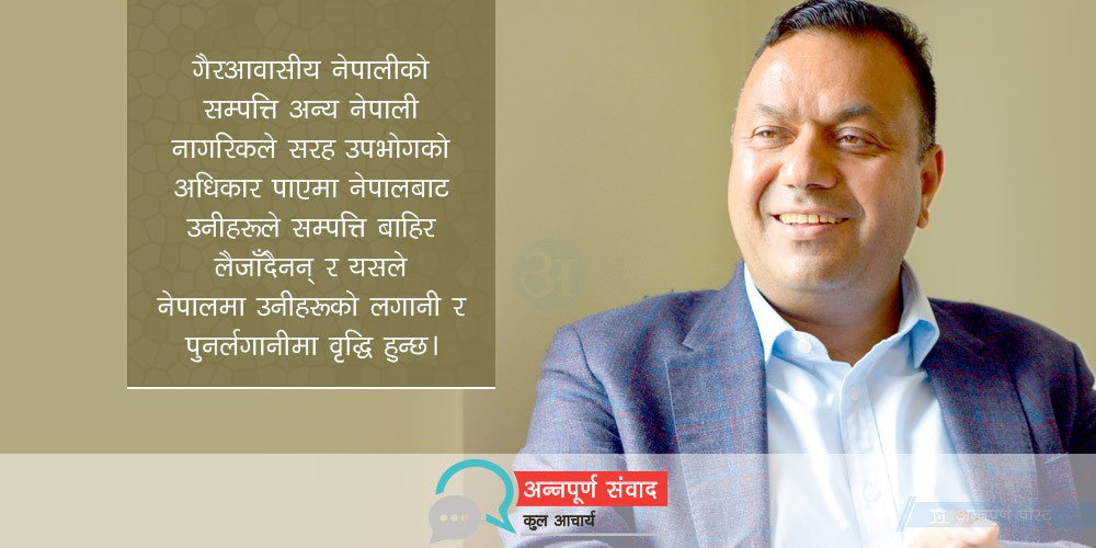 गैरआवासीय नेपाली नागरिकताको विषयलाई त संविधानले सम्बोधन गरिसक्यो । अब सम्पत्तिको अधिकारमा हामी किन अल्झनु पर्यो ? गैरआवासीय नेपालीले नेपालमा जोडेको चल, अचल सम्पत्ति बिक्री हुँदा त देशभित्रै किनबेच हुने हो । सम्पत्तिको अधिकार तीन पुस्तामा सीमित गर्नुको औचित्य के हो ? म बेलायतमा बस्छु । संसारभरका धनाढ्यले त्यहाँ घरजग्गा जोडेका छन् । नेपालबाटै कति ब्रिटिस गोर्खाले बेलायतमा जग्गाजमिन जोडेका छन् । के बेलायत सरकारलाई कहाँ–कहाँबाट उनीहरूको देशमा अचल सम्पत्ति खरिद गर्न पैसा भित्रिरहेको छ भन्ने थाहा नभएको होला र ? आत्मसात गर्नैपर्ने एउटा सत्य के हो भने हामीले लगानीकर्तालाई स्वागत गर्ने नीति ल्याउन सकेका छैनौं ।